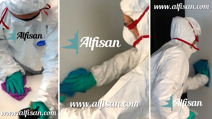 Las propiedades desinfectantes son proporcionadas por las sustancias activas que contienen, aunque no todas estas sustancias son eficaces frente a todos los organismos nocivos. En ALFISAN utilizamos un desinfectante-detergente de doble acción, con etiqueta HA (apto para zonas alimentarias), indicado para desinfectar de manera efectiva sin necesidad de aplicar producto donde exista peligro de contaminación y en espacios destinados al público como pueden ser: escuelas, hoteles, oficinas, servicios higiénicos, etc. Al no contener lejía, es totalmente neutro y biodegradable apto para cualquier superficie y lugar.